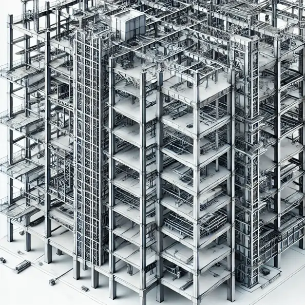 - مدلسازی سازه: در این مرحله، نقشههای معماری به نقشههای سازهای تبدیل میشوند و با توجه به الزامات پروژه، مدل سهبعدی سازه در نرمافزارهای تخصصی ساخته میشود.