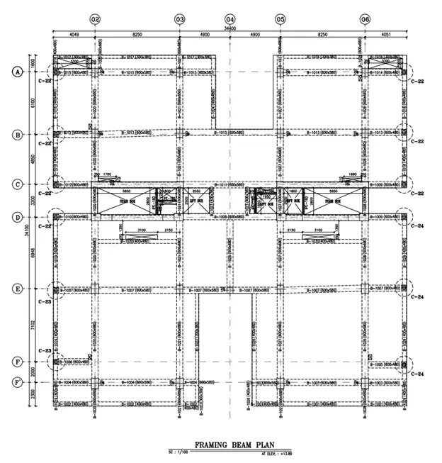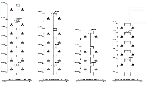 - نقشههای اجرایی: این نقشهها شامل موقعیت دقیق ستونها، دیوارهای برشی، تیرها و سایر اعضای سازهای است. همچنین جزئیات هر عضو سازهای از جمله ابعاد، تعداد میلگردها، ضخامت ورقهای فولادی و جزئیات اتصالات در این نقشهها ارائه میشود.