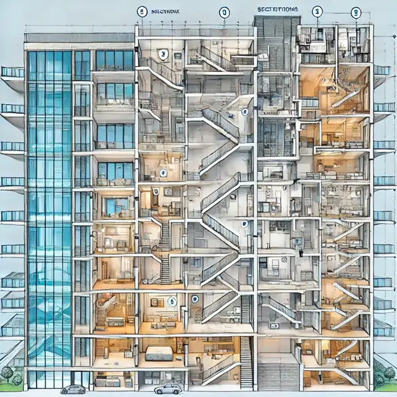 - مقاطع: که بخشهای مختلف ساختمان را بهصورت عمودی نمایش میدهد و نحوه ارتباط بخشهای مختلف را نشان میدهد.