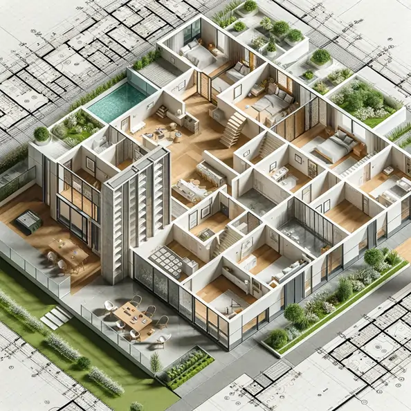 - تعداد طبقات و تقسیمبندی فضاها: تعداد طبقات و نحوه قرارگیری فضاها با توجه به کاربریهای مختلف تعیین میشود.