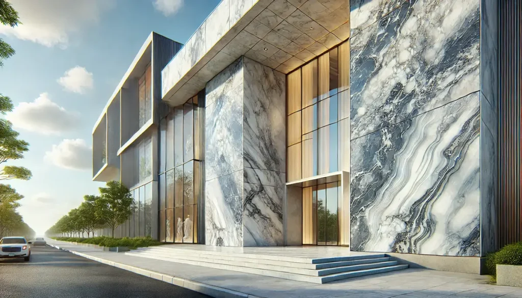 سنگ مرمر به دلیل زیبایی خیرهکننده، جلای خاص، مقاومت بالا در برابر سایش و فرسایش، و تنوع رنگی گسترده، انتخابی مناسب برای نمای ساختمانهای لوکس و مدرن است.